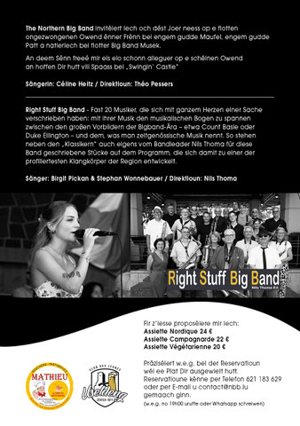 D’Northern Big Band ënnerhält säi Publikum mat original a mat neien Arrangementer vu bekannten Jazz a Big Band Standards.